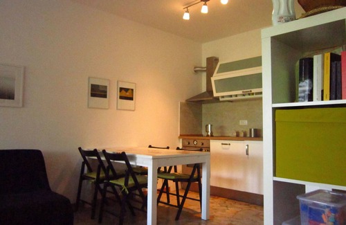 Apartment completely renovated in 2012, consisting of a large room with extremely comfortable welded mesh sofa bed, partially obscured from view by a library. Kitchenette with modern and equipped kitchen complete with dishwasher and induction hobs, dining corner. A bedroom with comfortable dressers and three beds, a bathroom with shower. Large built-in wardrobe.