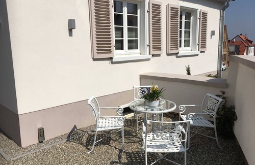 With great attention to detail, the former single-family house in the Langental was renovated by us and completely refurbished. We, Bettina and Ulrich Christmann, were born and raised in the Palatinate. Since our heart beats for good wine, conviviality and the wine road, we meet with Christmann's Cottage a long-awaited dream! We would like to share our attachment to our homeland with you. We fell in love with the small house in July 2016. Then followed in 2017 and 2018 the renovation work and two modern and exclusive apartments. With a wonderful view of the Rhine plain, which in good weather reaches to the Odenwald, the day starts perfectly. You can get breakfast in nearby cafes, or bread rolls and everything you need for a well-balanced breakfast at the nearby bakery. From spring you can end the evening in the courtyard with a cozy glass of wine. We look forward to your inquiry! Parking is free in the immediate vicinity. Bookings on the weekdays Monday to Thursday are rewarded with a significant price advantage!