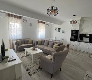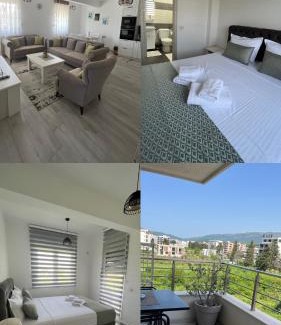 Providing a shared lounge, Apartment All Seasons provides accommodations in Ulcinj. This property offers access to a balcony, free private parking, and free Wifi. The accommodation offers airport transfers, while a car rental service is also available. Offering a terrace and mountain views, the spacious apartment includes 2 bedrooms, a living room, flat-screen TV, an equipped kitchen, and 2 bathrooms with a shower. Towels and bed linen are featured in the apartment. For added privacy, the accommodation has a private entrance and soundproofing. Guests may eat at the on-site family-friendly restaurant, which is open for dinner, lunch, brunch, and cocktails. Guests at the apartment will be able to enjoy activities in and around Ulcinj, like hiking and pub crawls. If you like to discover the area, windsurfing, cycling and fishing are possible in the surroundings and Apartment All Seasons can arrange a bicycle rental service. Velika Plaza Beach is a 15-minute walk from the accommodation, while Port of Bar is 18 miles away. Podgorica Airport is 43 miles from the property.