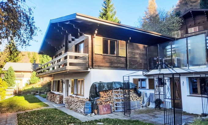 Small, cosy chalet "Alpa", 1'660 m a.s.l 2 storeys. 750 m from the centre of Bürchen, in a quiet position, 100 m from the edge of the forest. Narrow motor access to the house. Stepped path (36 steps) to the house. Parking. Grocery, bakery 750 m, 12 minute walk to the centre, bus stop "Bürchen Lischweide" 450 m, railway station "Visp Bahnhof" 12 km. Chair lift 1 km, slopes 250 m, ski bus stop 450 m. Please note: the owner lives on the same property.