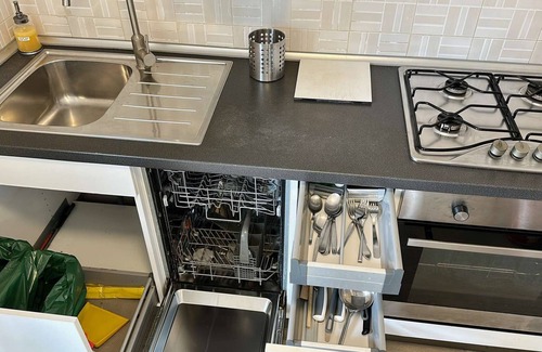 The apartment is internally composed as follows: an entrance/living room with a four-seater table that can be extended to 6 with four chairs, a black bookcase and a sofa bed for one and a half. An eat-in kitchen with fridge, freezer, 4 burner stove, electric oven, dishwasher, boiler, crockery, pots, pans, trays, text for piadina, aluminum and glass lids, plates, glasses, provisions, LAVAZZA A MODO MIO coffee machine and MOKA coffee maker for 6 people. First bedroom with a double bed, wardrobe, bedside tables with lamps and two attic closets for luggage and chair. Second bedroom with two single beds, bedside table with lamp, wardrobe and chair. A utility room with washing machine. The radiator heating of the whole apartment is in all the bedrooms, while the Panasoni hot/cold/humidity heat pump air conditioners are present only in the bedrooms. The apartment was completely renovated in March 2018, the systems are up to standard and fully functional, with all the certifications and instruction manuals.