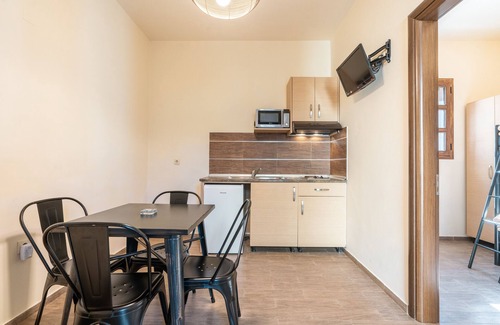 The holiday apartment Asimenis Cottages maisonette 3 is located in Rhodes and is the ideal accommodation for a relaxing getaway. The 70 m² property consists of a living room with a sofa bed for one person, a well-equipped kitchen, 1 bedroom and 1 bathroom and can therefore accommodate 5 people. This accommodation does not offer: Wi-Fi, air conditioning and towels.