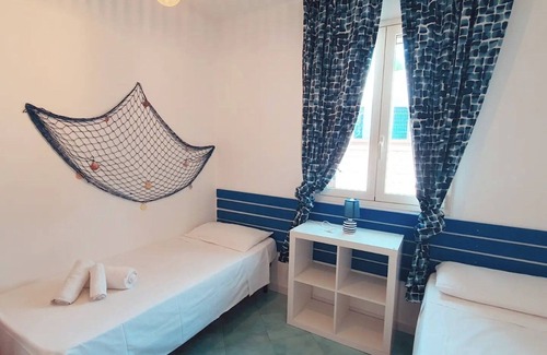 This air-conditioned apartment with a private entrance includes 1 living room, 2 separate bedrooms and 1 bathroom with a shower and bidet. The kitchen with refrigerator and utensils is at your disposal to prepare meals and store food. The spacious apartment features a seating area, dining area, wardrobe and terrace with sea views. The accommodation has 3 beds. In the private kitchen: Refrigerator Kitchen utensils Outdoor furniture Outdoor dining area Dining area Dining table In the private bathroom: Bidet WC Bath or shower Hairdryer View: Balcony Terrace Sea view Internal courtyard view Patio Apartment amenities: Kitchen Refrigerator Utensils Kitchen Outdoor furniture Outdoor dining area Dining area Dining table Dining table Semi-detached Sofa Outdoor furniture Iron Clothesline Seating area Electrical socket near the bed Detached Towels/sheets available for a fee Refrigerator Marble or tile floor Entrance hall independent Kitchen utensils Kitchenette Kitchen Independent air conditioning in each accommodation Heating Wardrobe or wardrobe Outdoor dining area Mosquito net Air conditioning Dining area Clothes rack Smoking: Smoking is prohibited
