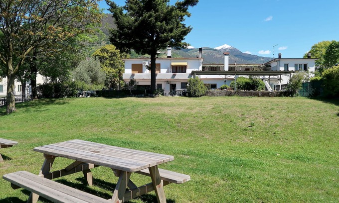 "Betti", 2-room apartment 40 m2 on 1st floor. Simple and practical furnishings: upper floor: (exterior staircase) living/sleeping room with 1 sleeping facility and open-hearth fireplace (only for decoration), dining table and satellite TV. 1 open room with 1 double bed. Kitchen (oven, 4 gas rings, toaster, electric coffee machine). Shower/WC. No heating option. Terrace roofed. Terrace furniture. View of the lake and the mountains. Facilities: children's high chair, baby cot. Internet (WiFi, free). Parking (roofed, 1 car). Maximum 1 pet/ dog allowed. IT013089C2L6TXJM3O