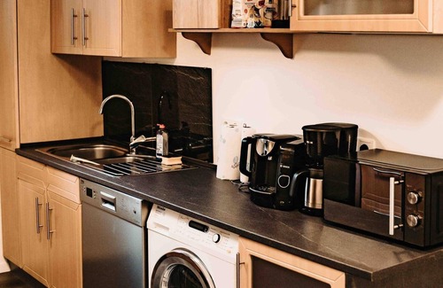 Prepare a home-cooked meal in the kitchen, complete with an oven, a stovetop, and a refrigerator, as well as a coffee maker, a microwave, and cookware. And you won't have to pack extra clothes, because you'll also have access to laundry facilities. Other amenities include heating and a dining table.