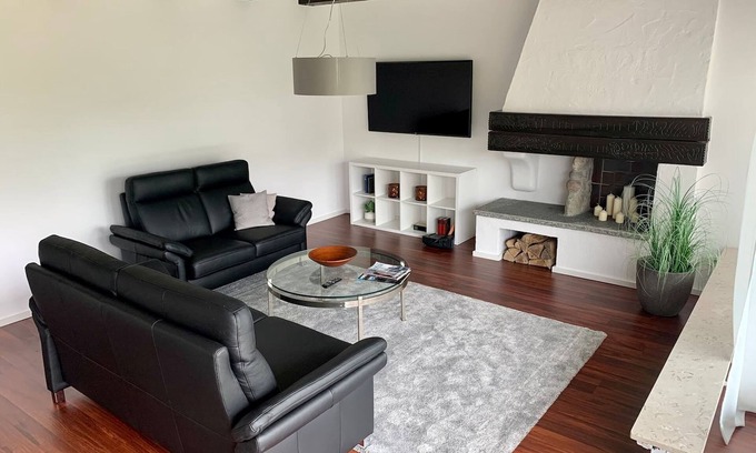 This advertisement is for the first floor apartment with 3 bedrooms. A separate WC is available. From the living area you can access the terrace with a large adjoining sunbathing lawn. The kitchen is fully equipped and offers everything you need for cooking together. There is plenty of space in the living room for games evenings and get-togethers.