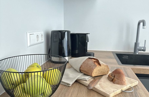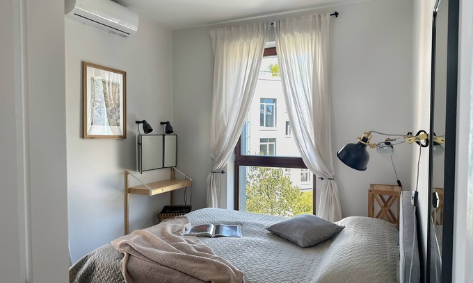 Step into our 52-square-meter retreat featuring a bright and open living space with large floor-to-ceiling windows that flood the apartment with natural light. The fully equipped kitchen is ready for your culinary adventures, and a coffee maker is on hand to kickstart your mornings.