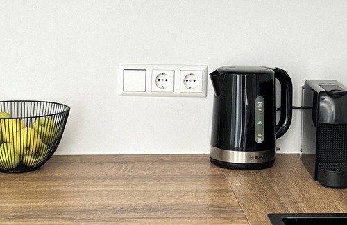 Step into our 52-square-meter retreat featuring a bright and open living space with large floor-to-ceiling windows that flood the apartment with natural light. The fully equipped kitchen is ready for your culinary adventures, and a coffee maker is on hand to kickstart your mornings.