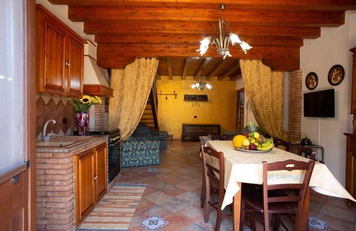 SCIACCA TERME "HOLIDAY HOUSE 4 PILERI" was born. The accommodation is located just 5 MINUTES from the city and the sea, in the Piana Scunchipani district (on the SS 115 Sud Ovest Sicula and near the SS 624 Palermo-Sciacca) inside the Royal Trazzera called "4 Pileri", in the past entrance avenue of the majestic "Villa Venuti" completed in 1792 and still exists. Surrounded by the typical vegetation of the place, it lies on a beautiful plain with green lawn and on a biological garden where austere and majestic ancient olive trees stand which, with their suggestive and harmonious shape, seem to be the natural custodians of such wonder. It is a place where peace and tranquility reign supreme, away from the chaos and noise of the city, ideal for families, couples and, above all, for groups who want to spend a holiday in contact with nature and at the same time have the opportunity to reach seaside destinations or those of high cultural value. Everything is studied in detail and equipped with the necessary comforts for a relaxing and healthy holiday. SWIMMING POOL, TV, WI-FI, kitchen, barbecue, air conditioners, heat pumps, deck chairs, sofas, washing machine, hairdryer, coffee maker, microwave oven etc ...