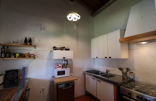 Casa Azul is located above the pool and offers privacy! Private terrace with hill views, 200 m² cypress garden and wood/gas barbecue. There is also garden furniture (table, chairs, couch, sun loungers) for your exclusive use. Through your own entrance from the carport you enter the casa with living room and dining area, 2 bedrooms, open kitchen and bathroom. The restoration of the casa has become a mixture of contemporary splendor and elements of fascinating tradition. As a result, the climate is always pleasant while protecting the climate and reducing the CO2 balance, as it is energy self-sufficient! In winter there is heating and a fireplace everywhere, as well as an infrared cabin as a highlight. German SAT-TV and 4G WLAN naturally included.
