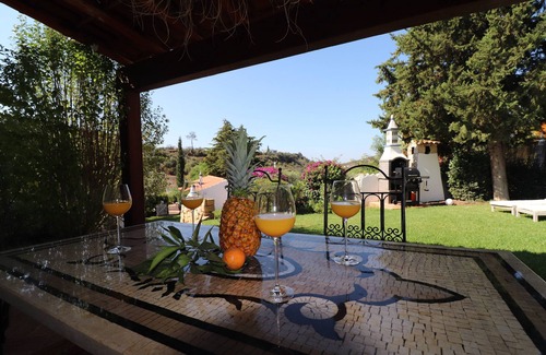 The focal point between the two vacation homes is the beautiful pool oasis with a special Moorish aura between olives, oranges and cypresses. This beautiful place exudes an incredible attraction, which all guests can enjoy at any time of day. In the evening, enjoy a glass of wine by the fire, relax in the sun or take a dip in the pool. The 50,000 m² Quinta offers you plenty of space to relax, hike, swim or play sports. Boules, soccer, cricket, badminton, table tennis and an underwater bike! Hiking trails right on the doorstep. A real paradise! The owners also live in their own casa with pool on the quinta.