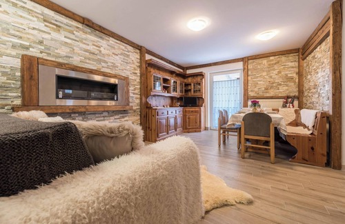 The apartment benefits from a central location in Madonna di Campiglio. Just a 2-10 minute walk from the accommodation you will find numerous restaurants, cafes and bars, as well as shopping facilities. A bus stop is just 10 metres from the accommodation. In winter, the ski bus will take you to the nearest ski resort, while in summer you can go hiking or cycling in the Adamello-Brenta Nature Park. Other sporting highlights you can take advantage of are rafting, paragliding and trekking tours. You can reach the Campo Carlo Magno Golf Club after an 8-minute drive (5 km). The golf course is open from July to the end of September and is set amidst the enchanting mountain scenery of the Brenta Dolomites.