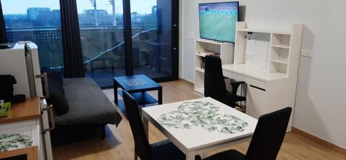 Apartment Cherry Bratislava & free parking offers accommodations in Bratislava, a 7-minute walk from Ondrej Nepela Arena and 2 miles from Bratislava Main Station. Among the facilities of this property are a restaurant, an elevator, and an ATM, along with free Wifi. There's parking on-site, and the property provides an electric vehicle charging station. Opening onto a balcony with city views, the apartment consists of 1 bedroom. Providing a terrace with mountain views, this apartment also offers a cable flat-screen TV, a well-equipped kitchen with a dishwasher, a microwave, and a toaster, as well as 1 bathroom with a bath and slippers. This apartment is non-smoking and soundproof. A selection of options including fresh pastries, juice, and cheese are served for the buffet breakfast. There is a coffee shop, and a mini-market is also available. Guests can stay active with the fitness classes held on site. The area is popular for skiing and cycling, and ski equipment rental is available at the apartment. Outdoor play equipment is also available for guests at Apartment Cherry Bratislava & free parking. St. Michael's Gate is 2.3 miles from the accommodation, while Bratislava Castle is 3.1 miles from the property. Bratislava Airport is 3.1 miles away, and the property offers a paid airport shuttle service.
