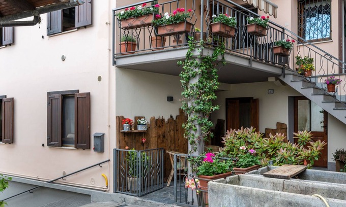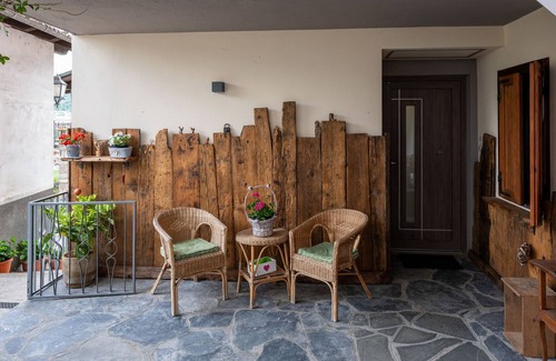 2-family house "Cima". In the district of Felinaz 5 km from the centre of Aosta, outside the resort, 4 km from the centre of Charvensod, in a quiet position in the residential district, 1.5 km from the river. Private: large garden (fenced) wildlife garden and trees. In the house: storage room for bicycles, storage room for skis. Stepped path (8 steps) to the house. Parking at the house. Grocery 3 km, supermarket 3 km, bus stop "Charvensod" 4 km, outdoor swimming pool 4.6 km, indoor swimming pool 4.6 km. Golf course (9 hole) 16 km, indoor tennis centre 4.6 km, sports centre 4.6 km, cycle lane 600 m, gondola lift 2.3 km, ice rink 4.6 km, children's playground 4.6 km. Nearby attractions: Ovovia per Pila 2.3 km.