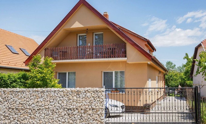 Balatonszemes 7 km from Balatonlelle: Please note: security camera on the exterior of the property. Cosy 2-family house, 2 storeys, renovated in 2022. In the resort, 400 m from the lake, 500 m from the beach. For shared use: property 400 m2 (fenced), garden 100 m2 with plants. In the house: WiFi, air conditioning, washing machine. Parking at the house. Grocery 500 m, supermarket 6 km, restaurant 700 m, bakery 1 km, café 800 m, 500 m, outdoor swimming pool 600 m. Riding stable 3 km, cycle lane 500 m, children's playground 300 m.