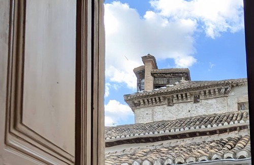 The private outdoor area includes a balcony, and you have access to a shared outdoor area with an open terrace. The apartment is located in the Albaycin district, right in the city center, next to Plaza Nueva.