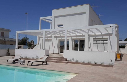 The modern, elegant apartment "Elite Luxury Residence 1" is located in a brand new residence with swimming pool not far from the center of Torre Suda and is the perfect place for a relaxing beach vacation. The 60 m² apartment consists of a living room, a well-equipped kitchen, 2 bedrooms and a bathroom and can therefore accommodate 4 people. Additional amenities include Wi-Fi (suitable for video calls), air conditioning, a TV, and a shared washing machine.