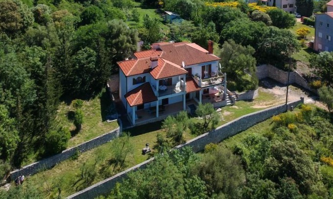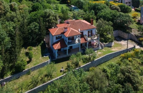 Semi-detached house "Ester". 10 km from the centre of Labin, 15 km from the centre of Rabac, 150 m from the centre of Sveta Marina, 350 m from the sea, 350 m from the beach. For shared use: property 900 m2 with trees. In the house: internet access. Motor access to 30 m from the house. 30 m footpath to the house. Public parking 30 m on the road. Shop, restaurant 150 m, pebble beach 350 m. Marina 15 km.