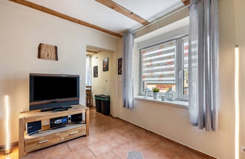 With a view of the mountain, the holiday apartment Ferienhaus Fichtelberg Apartement B in Oberwiesenthal is perfect for a relaxing holiday. The 2-storey property consists of a living room, a fully-equipped kitchen, 2 bedrooms and 1 bathroom as well as an additional toilet and can therefore accommodate 4 people. Additional amenities include Wi-Fi, a TV as well as children's books and toys. On top of that, a table tennis table and a shared sauna are also provided for your enjoyment. A baby cot and a high chair are also available. This vacation rental offers a private outdoor space with a garden, covered terrace, barbecue, and playground.