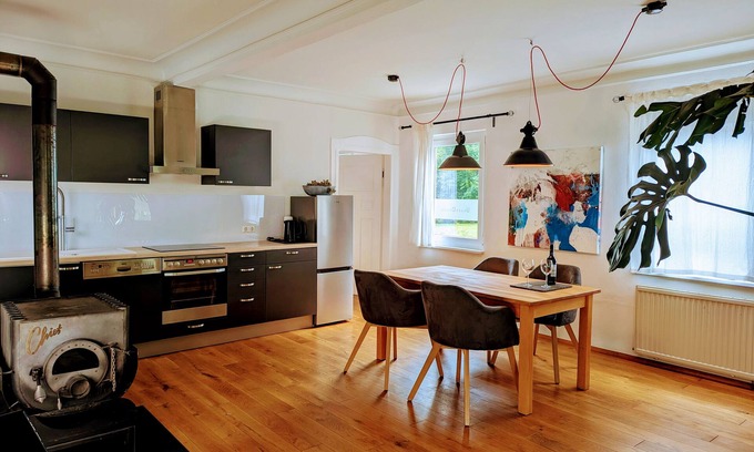 Located in Lichtenstein, this 60 sqm apartment welcomes up to 2 guests with 1 bedroom and 1 bathroom. You will have access to a private fully-equipped kitchen, Wi-Fi suitable for video calls, a dedicated workspace, and a washing machine. Mountain views add to the charm of your stay, and original artworks by Thomas Mautner Hipp are displayed throughout the apartment.