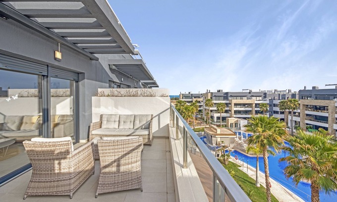 Apartment 'Flamenca Village' with Shared Pool, Wi-Fi and Air Conditioning is located in Orihuela Costa. Apartment 'Flamenca Village' with Shared Pool, Wi-Fi and Air Conditioning provides accommodation, featuring Child Friendly, Pool, Wheelchair Accessible, among other amenities. This Apartment features Child Friendly, Pool, Wheelchair Accessible, to make your stay a comfortable one.
