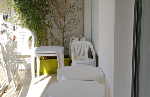 (Text automatically translated) T3 furnished ideally located 12m2 terrace facing the sea, 2 private parking, communal garden at the residence, 1st floor without elevator. 1 room with 1 bed for 2 people, 1 Bedroom 2 with 1 single bed and 1 bunk bed (2 singles) Telephone and internet can reduced rate for several months out of season - Possibility of linen and garage with extra charge