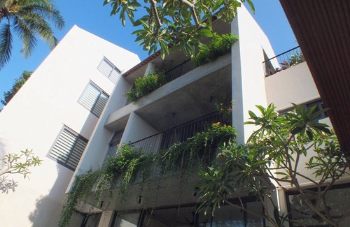 Apartment for 2 paxs on 1st floor, with shared area, kitchen, garden, private entrance and shared swimming pool. 10 minutes from the sea by bicycle, explore nature in the coconut forest. Explore local cuisine.