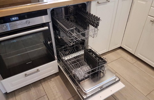 At the heart of this flat you will find all the amenities you need for a carefree stay. The fully equipped kitchen offers a ceramic hob, a coffee machine as well as a pod coffee machine and of course a dishwasher and kettle to make your stay as comfortable as possible. The carefully selected appliances underline our endeavour to offer you a comfortable and practical living space.