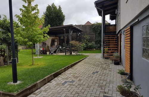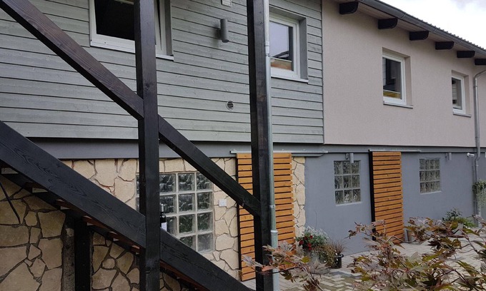 The outdoor area invites you to linger and enjoy. You have the choice between relaxing on the terrace or balcony and lingering in the well-tended garden, which is for communal use. Several seating areas offer space for cosy hours outdoors. The availability of eight parking spaces underlines the thoughtful design of our property, which was once a small farm with a roofing business and has been lovingly renovated to offer our guests an incomparable holiday experience.