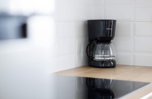 Induction hob, fridge/freezer, oven, dishwasher, oven, coffee maker (pour-over), cutlery and crockery set, cooking utensils, electric kettle