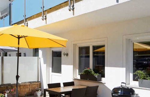 Our maisonette GRANIT with its 110m² spreads over 2 floors. On the ground floor you will find an open kitchen and generous living space for 4-7 persons. From here, the furnished terrace with barbecue facilities zubegehen. Upstairs are two bedrooms (double with balcony and triple) and a bathroom.