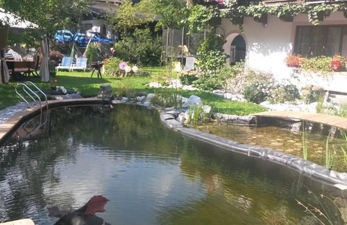 Family-friendly house with two well-kept newly renovated comfort apartment in a very quiet location, with free Wi-Fi, 500m ² Feng Shui garden with 30m ² large swimming pond, massage studio in the house, where we offer a comprehensive massage program of relaxation - to remedial massages. In the morning, practice yoga and Qi Gong in the garden with the Physician Certified Yoga Teacher Thomas. Enjoy breakfast or barbecue in the garden and in the 6eckigen pavillon. In the sports garden you can at a ball game such. B. Basketball, badminton, table tennis or in our large trampoline (Ǿ about 5m) pleasure. Furthermore, our guests have a heated ski, ski boot or bike room available. Ideal starting point for cycling and mountain tours.