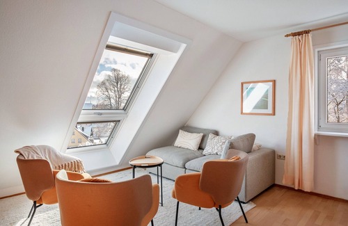 In two bright, spacious and modern apartments (82 m²/4 rooms/kitchen/2 bathrooms and 65 m²/2 rooms/kitchen/bathroom) you can enjoy an unobstructed view of the Black Forest and the Swiss Alps. The entrances to the apartments are right next to each other.