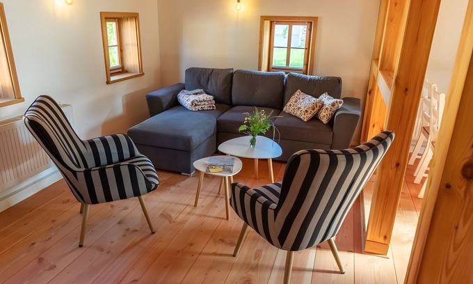 The holiday apartment Ferienwohnung Hochwald in Bertsdorf-Hörnitz is the ideal accommodation for a relaxing holiday with a mountain view. The 2-storey property consists of a living room, a kitchen, 2 bedrooms and 1 bathroom and can therefore accommodate 6 people. Additional amenities include high-speed Wi-Fi (suitable for video calls) with a dedicated workspace for home office, a smart TV with streaming services as well as children's books and toys. A baby cot and 2 high chairs are also available.