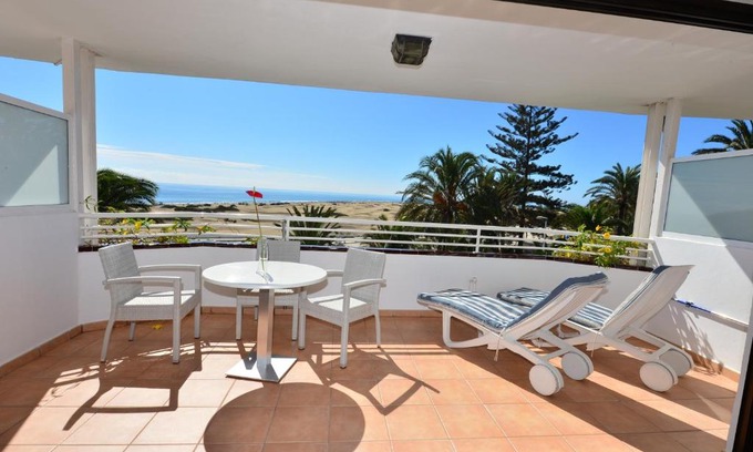 Ideally located in Playa del Inglés on the popular tourist island of Gran Canaria, this tranquil, sea-front hotel offers stunning views of the Dunas de Maspalomas. The small and cozy residence is situated in an extremely privileged area, with its upper-floor apartments boasting exquisite views of the main beach. Moreover, all 24 apartments have charming terraces or balconies. When you are not relaxing on the beach, you could take a swim in the outdoor, heated swimming pool, sit on the grounds or walks to the nearby stores and restaurants.