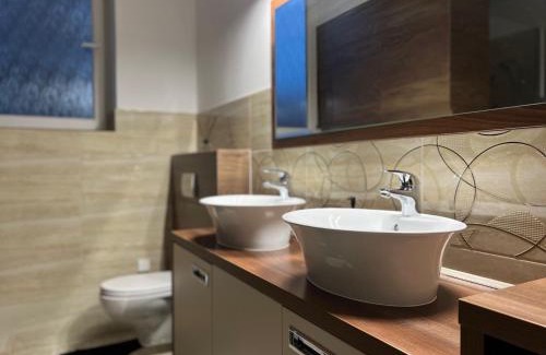 26 miles from Beckov Castle in Nová Dubnica, Apartment House Nová Dubnica offers accommodations with access to a sauna. With city views, this accommodation features a terrace. The spacious apartment includes 2 bedrooms, a fully equipped kitchen with an oven and a toaster, as well as a kettle. A flat-screen TV with streaming services is offered. The accommodation is non-smoking. A continental, full English/Irish, or Italian breakfast is available at the property. Piesťany Airport is 33 miles from the property.
