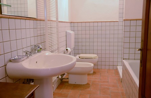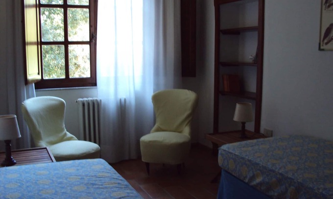 The apartment consists of a living room with fireplace, a kitchen, a large double bedroom, a bedroom with two single beds and a closet. All bedrooms have garden views, ceiling fan blades. The windows are all equipped with mosquito nets. The bathroom has a bidet, tub and shower. The apartment is accessed directly from the garden through an external staircase. The apartment comfortably accommodates five people. In exceptional cases, and on specific request, a bed can be added.