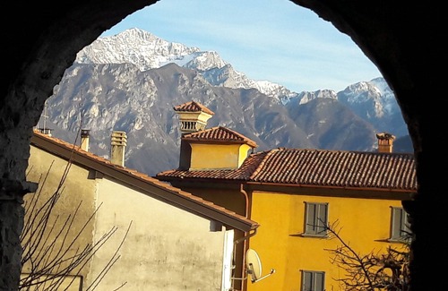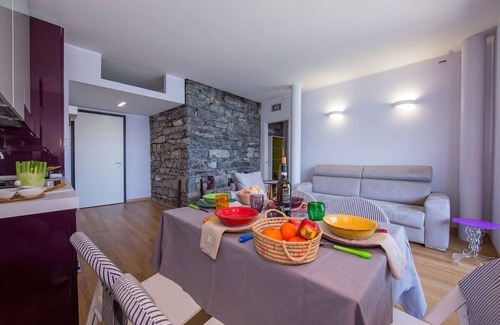"Gemma del Lago" is a luxurious residence housed in a historic stone mill, directly on the lake, featuring access to a communal pool. Our apartment boasts charming stone walls, wooden floors, and breathtaking views of the Alps and the lake, which can be enjoyed from the open-plan living area, the terrace, and the bedroom. The kitchen is fully equipped, and private indoor parking is provided. Guests have access to the lake via a shared wooden pier and nearby beaches.