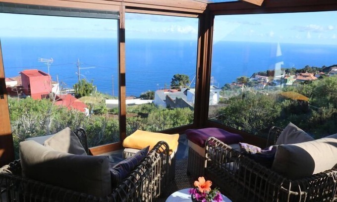 True to the original restored finca on a 1,200 square meter plot in a quiet location with views of the sea and a whirlpool for private use. The main house and the four outbuildings have been lovingly restored and are grouped around an inner courtyard. The living room, the kitchen and one of the bedrooms are in the main building, the three bedrooms are each in an annex. Activities nearby: El Tanque is perfect for a quiet and relaxing holiday in the west of Tenerife. The perfect location offers numerous excursions, for example to Teide, Garachico, Puerto de la Cruz or La Orotava. The village is idyllically located and surrounded by dense pine forests. An absolute highlight in El Tanque is the Camello Center (camel farm) for families or, for sports enthusiasts, the 18-hole golf course in the surrounding area Your accommodation: In the part of the finca facing the mountain there is a building with a bedroom (1 double bed) with its own bathroom (shower, toilet, hairdryer) and a small dining area. There are also 2 further rooms (2x 1 double bed) without their own bathroom. Guests of these rooms use the spacious bathroom on the patio. All rooms are equipped with bed linen and hand or bath towels. Further features: photovoltaic system, solar thermal energy for hot water, fireplace. Internet connection (Wi-Fi in the areas: kitchen with dining area, living room with bedroom, patio + panoramic terrace, inner courtyard, in the 3 other rooms and in the garden). Exterior equipment: 4 terraces (some with a covered patio, all with garden seating or sun loungers), a cozy hobbit bench with a roof under a large pine tree, outdoor grill (on one terrace there is a large table and chairs available to guests for meals or cozy get-togethers). Whirlpool (heatable)_for private use. There is space for several vehicles to park in the driveway to the house (3 car spaces