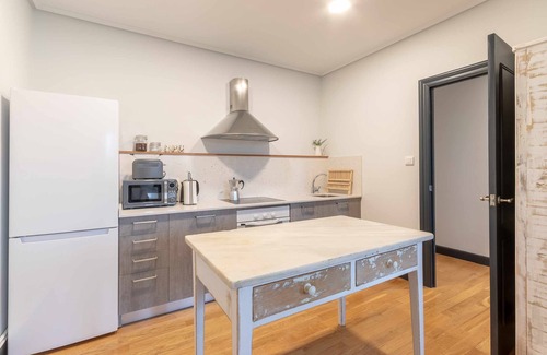 Beautiful 3 bedrooms and 2 bathrooms apartment located in Erandio, with frontal views of the Bilbao estuary and its industrial heritage. Located next to the Lutxana metro station that takes you in 10 minutes to the center of Bilbao. Decorated with great care, it has all the necessary equipment to feel at home. It has a total of five good quality beds: one double bed and four single beds. Ideal for couples, family and work.