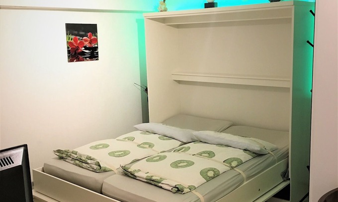 This cozy apartment with widescreen TV, internet access and parking is in a quiet location in the green.