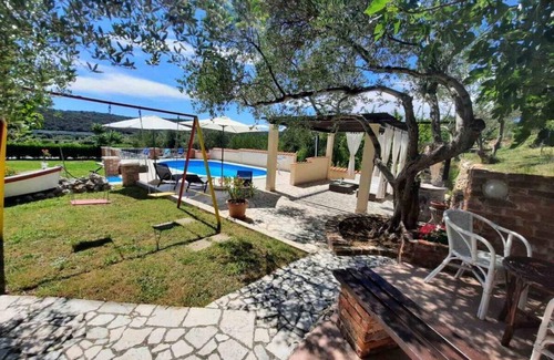 The great pool house is located in the Kvarner bay in Kampor on the island of Rab and is about 1.2 km from the sea. 4 apartments for 3-5 persons are rented here. The apartments have free Wi-Fi internet, private parking, satellite TV, a furnished terrace or balcony, a kitchen and a private bathroom. Two of the apartments also have air conditioning and sea views. The house offers its guests a great outdoor pool, a yard / garden use, a barbecue, a garden and sun terrace with sun loungers and parasols, a lawn and a children's playground with slide and swing. Bed linen and towels are provided. Pets are not allowed.