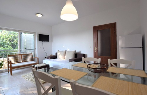 This picturesque 2-bedroom apartment is in Mandre. It is ideal for a family and can accommodate 4 guests. This property has a private terrace for you to unwind after a long tiring day.