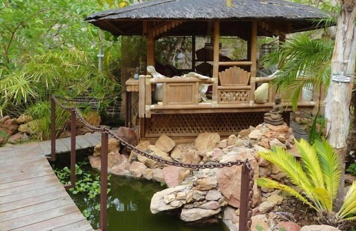 Dive into another world! The very individual wooden houses and bungalows are located in the middle of the mountains in a 40,000 square meter botanical garden with numerous artistic exhibitions. You can admire an abundance of exotic, tropical and indigenous plants and pausing at the sculptures of artists who are prominent in the garden. A tour of the finca becomes a unique experience. The free spirit of the hosts can be felt everywhere: everyone can spend his vacation in his own way, as long as it has no influence on other attendees. Multiple terraces and seats ensure the necessary delay, from which you can enjoy the beautiful view of the wealth of vegetation and the mountain landscape, or the café with a cozy outstand. In the complex restaurant you can enjoy the excellent kitchen between antiques. The property also offers the right setting for seminars, exhibitions and all kinds of parties. Day trips to Maspalomas and Playa del Inglés with their various places of entertainment ensure variety.