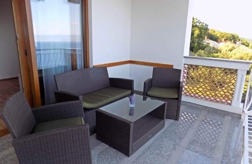 Fully fenced property: yes, Height of the fence: Apartment 6 (2+2) consists of one bedroom (double bed), living room with kitchenette and bathroom with shower. The apartment have a balcony with external garden armchairs and beautiful sea view, air conditioning with possibility of heating (winter season), modern satellite LED TV, wireless internet connection and parking place. There is a possibility of 2 extra beds.