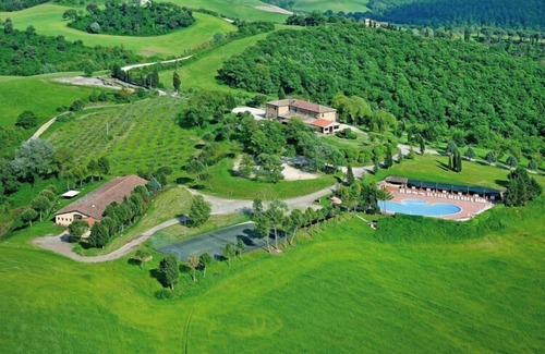 The lovingly restored summer residence of the diocese of Arezzo from the late 14th century and the contemporary Fattoria in Tuscan style near Buonconvento will inspire you from the first moment. The property includes a small church, some picturesque farms and residential buildings and 700 hectares of organic farmland. The rooms are decorated in a country house style and impress with visible wooden beam ceilings and walls, as well as wrought-iron beds and warm colors that give the building a nostalgic charm. From the communal terrace, the outdoor swimming pool (approx. 1 km away) and the rooms have a beautiful view over the hills of Crete and Val d'Orcia. Bring cozy evenings under the Tuscan stars on the raised terrace or inside the fireplace of the restaurant. There are various seating options under shady trees, there is a playground and hot tub. If it is raining, there is also an indoor swimming pool and a wellness at your disposal. The indoor swimming pool is approximately 1 km away. Just a short drive from the famous wine town of Montalcino, the beautiful medieval city of Siena and a stone's throw from the picturesque town of Buonconvento is your holiday complex nestled in the idyllic hilly landscape of the province of Siena. Buonconvento has a very well preserved old city. Typical Tuscan country houses are spread over the city and the adjacent country. It is not for nothing that Buonconvento was included in the list of the most beautiful villages in Italy. The pilgrim route "Via Francigena", identical to the famous Rümerstrasse via Cassia, runs right past the village. Details: consumption-based energy costs, bed linen, towels, final cleaning welcome gift: product from our own Fattoria Activities in the area: It is known that the happiness of the earth is on the skirts of a horse. Start your day with a relaxed breakfast on the resort's sun terrace, before you step into the saddle and explore the area on horseback. There are many other ways to fill the day and get to know the region: Swing with a club on the Golf Club Valdichiana, make a family trip to the Saltalbero Rapolano adventure park, grab a bike or pull your hiking boots and you can start ! Also, wellness treatments can be booked for relaxation and tranquility, followed by a dip in the sauna and cooling in the pool. The beautiful towns of Montalcino and Buonconvento are recommended as day trips. Due to the excellent climatic conditions and food-rich soil, the vines are converted here for one of the best wines in Italy - Brunello. A visit to the impressive fortress from 1361 is easy to combine with a wine tasting. In Buonconvento you will find a wide range of sacral art, for example in the Museo di Arte Sacra della Val d'Arbia. In the city of Siena with its impressive Romance-Gothic cathedral, the equally beautiful old town and the impressive abbey of Sant'Antimo you will also find a wide range of leisure activities.
