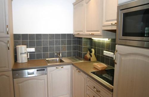 The apartment has a living room with a sofa bed, a well-equipped kitchen, a bedroom and a bathroom. The holiday home also has a lounge as well as an indoor pool and a sauna (use for a fee). You can park directly at the house.