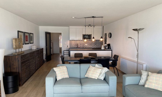 This charming 2-bedroom apartment on the sea wall in Nieuwpoort offers stunning coastal views and ultimate comfort, just steps from the beach. Nieuwpoort is a charming coastal town, known for its picturesque beaches, historical landmarks, and vibrant atmosphere. Whether you're looking to soak up the sun, take a refreshing swim in the North Sea, or enjoy a leisurely walk along the coastline, Nieuwpoort Beach provides the perfect backdrop for relaxation and recreation, located within walking distance. You can also Explore the bustling marina, where colorful sailboats and yachts bob gently in the harbor. Enjoy a meal at one of the waterfront restaurants or simply soak in the maritime atmosphere. Explore the scenic countryside surrounding Nieuwpoort on foot or by bike, following a network of well-marked trails that wind through picturesque villages, lush farmland, and peaceful nature reserves. Admire spectacular vistas of the azure sea and golden sands from the comfort of your living space, creating an idyllic backdrop for unforgettable moments. Unwind with your favourite shows on Wi-fi enabled television. Prepare delectable meals with ease in the fully equipped kitchen, complete with modern appliances and ample space for culinary adventures. Indulge in restful nights in the cozy bedrooms, thoughtfully designed to ensure a peaceful sleep experience for all guests. Enjoy hassle-free access to the apartment via the convenient lift.