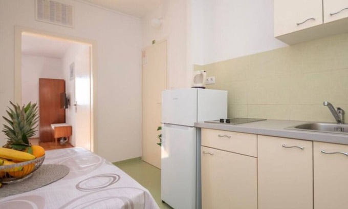 Enjoy an unforgettable stay in this charming apartment in Omis, just 150 metres from the fine sandy beach. With approximately 36 m², the holiday home offers space for up to 3 people and impresses with an air-conditioned bedroom, a cosy single and double bed, and a modern bathroom. The small kitchen-living area is fully equipped with a refrigerator, ceramic hob, filter coffee machine, and everything you need for self-catering. A dining table for three invites you to enjoy meals together.From the private south-facing balcony, you can enjoy a dreamlike view of the sea, the beach and the old town of Omis. Balcony furniture and a sun umbrella ensure relaxed hours under the sun, while the outdoor grill in the garden is ready for culinary highlights. WiFi, satellite TV, air conditioning as well as bed linen and towels are included in the price. If desired, you can use the hosts' washing machine (for a small fee).The location is ideal: In just a few minutes, you can walk to the old town of Omis with its winding alleys, restaurants, cafés, supermarket, banks and pharmacy. For active people, the surroundings offer numerous leisure activities: water sports, rafting, kayaking, mountain biking, tennis, climbing or excursions to the surrounding nature parks. Boat trips, diving and jet skiing are also possible directly on site.This apartment is the perfect choice for families, couples or small groups who want to combine beach holiday, nature and culture in Central Dalmatia.