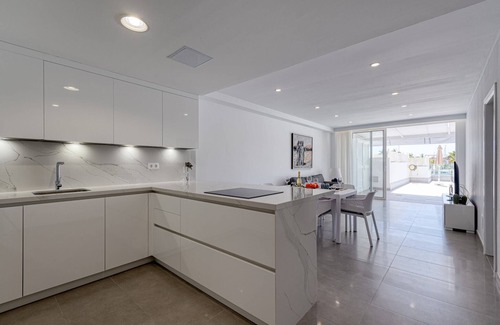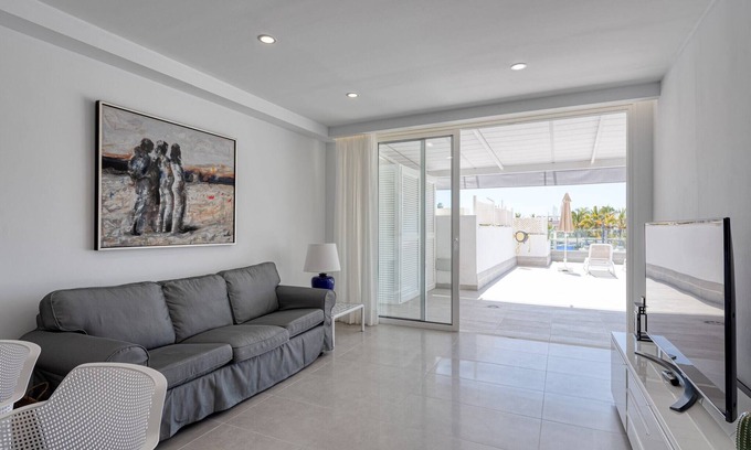 Are you dreaming of a vacation where comfort and exclusivity are seamlessly intertwined? Look no further than this modern apartment in the breathtaking Playa de Mogán. Nestled within a tranquil residential building, this apartment boasts high-quality materials and finishes, along with an unbeatable layout. Enjoy a spacious private terrace featuring stunning sea views, sun loungers, a cozy seating area, and high-speed 300 Mbps Wi-Fi for your convenience throughout your stay. Designed with contemporary style, the apartment offers a fully equipped kitchen complete with a dishwasher and all necessary kitchen utensils, making meal preparation a breeze. The living room invites relaxation with its comfortable sofa and dining table, while a Smart TV provides access to a variety of international channels, including sports networks for fans of the Spanish League and the Premier League. The accommodation includes one bedroom with a double bed and a private bathroom with a shower, as well as an additional bedroom with two single beds and a second bathroom for added convenience. Perfect for year-round enjoyment, this apartment guarantees a comfortable indoor and outdoor experience accompanied by beautiful beach views. For families, a cot and high chair are available upon request. The property is situated in a quiet residential area, ensuring a peaceful atmosphere for all guests. Additionally, parking can be arranged in a public garage nearby at an affordable rate. Located just 100 meters from the beach, restaurants, and shops, with golf courses and shopping centers a short drive away, this apartment is the ideal base for exploring all that Gran Canaria has to offer.